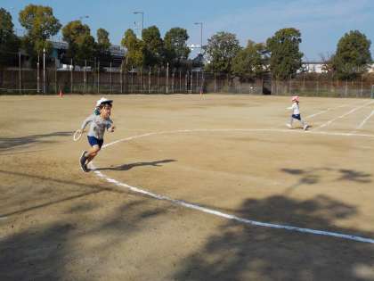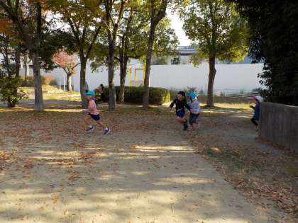 異年齢でリレーや鬼遊びをしたり、ドングリ拾いをしたりして、存分に体を動かして遊びました。