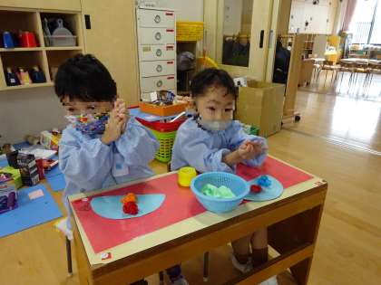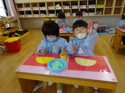 登園して、ホワイトボードに貼ってある、予定を見て子どもたちなりに見通しをもって生活しています。