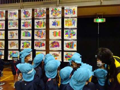 きょうだい関係の子どもたちの作品もあり、「すごいなぁ」「きれいやなぁ」