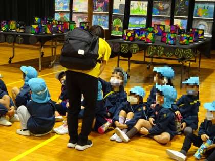 造形遊びの表現もあれば、言葉での表現も引きだし、子どもたちの表現を100%受け止め、自信をもって様々な表現ができるようにしていきます。