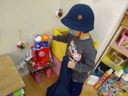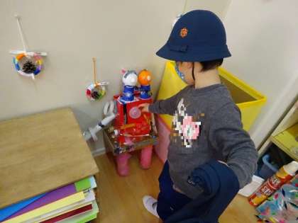 「これがな、こうなってな。ほんでな、ここがな…」と登園してきてすぐのМ君が説明してくれました。