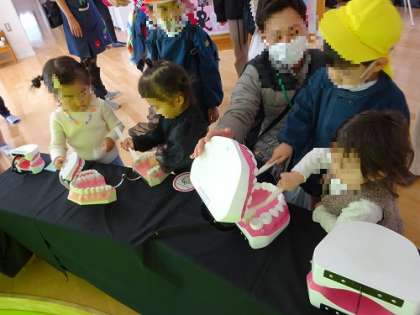 こども展覧会3(保健コーナー) 公開日 2022/11/25 更新日 2022/11/25 お知らせ 歯に興味をもってもらおうと始めたコーナーにたくさんの保護者と子どもたちです。 養護教諭のねらいは達成です! 歯の模型については、いつも園児は遊んでいるので、小さい子どもたちに大人気です。 歯磨きを上手にしていました。 いいね(0)