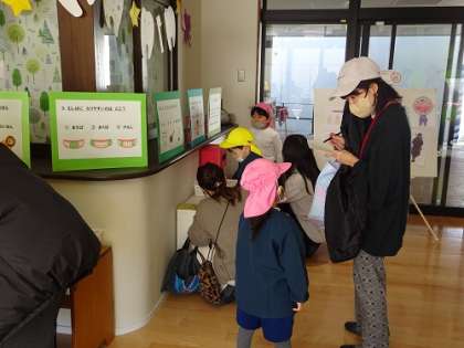 こども展覧会4(保健コーナー) 公開日 2022/11/25 更新日 2022/11/25 お知らせ クイズに挑戦するお家の方と、子どもたちです。 なかなか難しい問題に悪戦苦闘。 正解者には、プレゼントもあります! いいね(0)