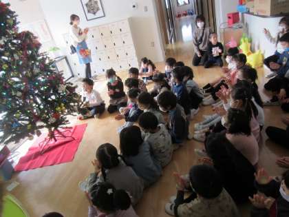 ツリーの飾りつけ(5歳児) 公開日 2022/12/03 更新日 2022/12/02 お知らせ 登園してくると、玄関に大きなもみの木の飾りがありました! 5歳児みんなで飾りつけをしました。 少し暗くして灯りをつけると、「うわあ!」と歓声があがりました。 手をたたいて大喜び! 「飾りつけしたから見に来てね!」と、3歳児、4歳児の子どもたちにお知らせしにいきました。 いいね(0)