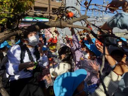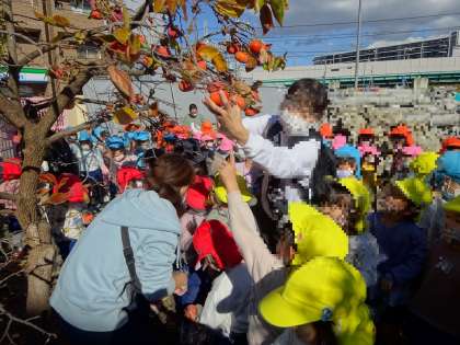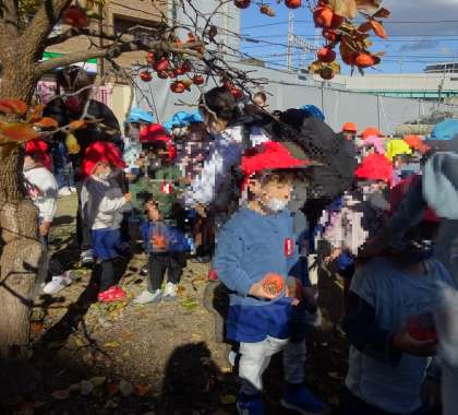 現在工事中の旧園舎の敷地に、秋の果物がたくさん実っていました。