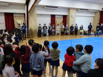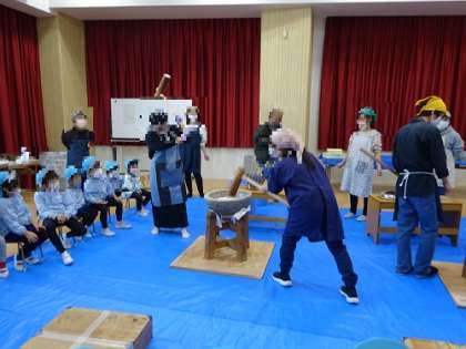 おもちつき 公開日 2022/12/09 更新日 2022/12/09 お知らせ ついたお餅は自分たちで丸めます。 そして鏡餅にしてもって帰ります。 お正月、家で、飾ってくださいね。 お手伝いのお家の方やもちろん担任の先生もお餅つきをします。 また、お手伝いいただいたPTAの方々に最後はお礼を言いました。 感謝の気持ちを持てるように、このような場も大事にしています。 いいね(0)