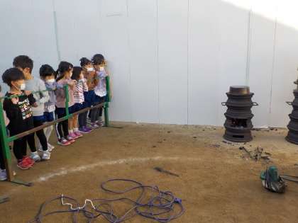 かまどの火 公開日 2022/12/09 更新日 2022/12/09 お知らせ お庭のかまどの火を見に行きました。 薪が燃える音に聞き入っていました。 「あったかいねえ」「煙がでてる」「ゆげやで」などとつぶやいていました。 いいね(0)
