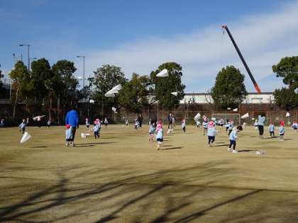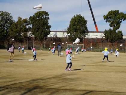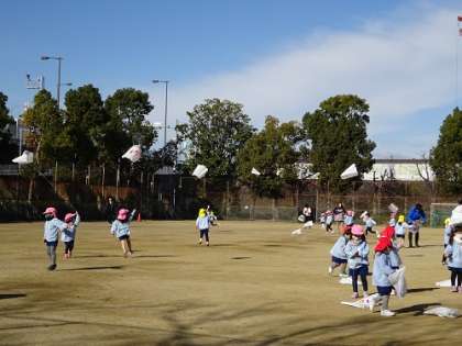 凧揚げ(3・4歳児) 公開日 2022/12/12 更新日 2022/12/12 お知らせ 子どもたちはずっと走っていました。 本当によく走りました。 汗もかいていました。 いい天気に恵まれて、楽しい凧揚げでした。 今週、グラウンドに何度か行って、凧揚げを楽しみます。 いいね(0)
