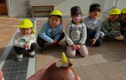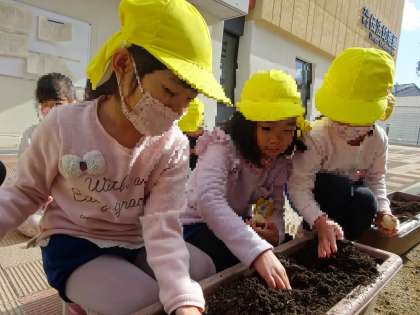 チューリップの球根を植えたよ! 公開日 2022/12/14 更新日 2022/12/14 お知らせ 「これ、何に見える??」と聞くと、「栗〜!」「玉ねぎ!!」と形から見立てて答えていました。昨年植えた経験のある子が「チューリップだよ」と教えてくれました。 「とんがってる方から芽が出てくるよ」「じゃあ、そっちを上にしないとね!」と話しながら、土を掘ってそ〜っと植えました。「土のお布団かけてあげようね」と優しく植える姿は可愛らしかったです!! いいね(0)