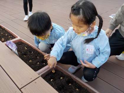 5歳児は、クロッカスの球根を植えました。