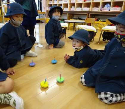 何度も回して遊んでいるうちに友達と一緒に回したり、「1、2、3〜」と何秒回っているか数えたりしながら楽しんでいます。