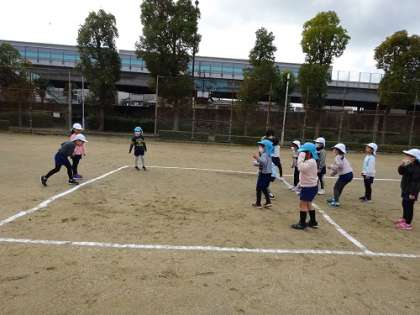 グラウンド(年長) 公開日 2022/12/22 更新日 2022/12/22 お知らせ 3つのコートを書き、ドッチボールをしています。 まだまだ、ルールの共通理解をしていませんが、ボールを投げて楽しんでいます。 徐々に困ったことを話し合い、自分たちでルール作りをしていきます。 いいね(0)