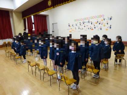 始業式では、園長先生から鏡餅の話を聞きました。子どもたちは興味津々です。明日は、鏡開きをします。伝統的な文化について子どもたちに知らせながら、楽しみたいと思います。