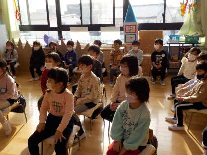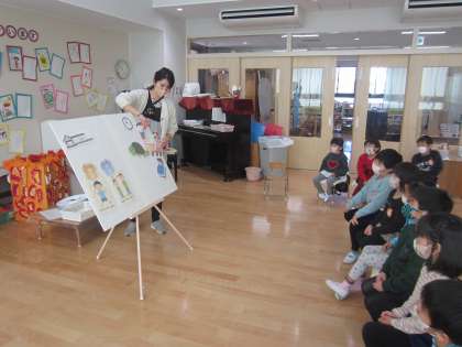 今日はそら組・つき組さんに『くじら列車に乗ろう』のお話をしました。