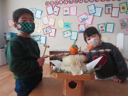 鏡開き(5歳児) 公開日 2023/01/11 更新日 2023/01/11 お知らせ 12月のもちつきでついた鏡餅の鏡開きをしました。 1年の安全と健康をお祈りしましたよ。 3学期も元気に遊びましょう! いいね(0)