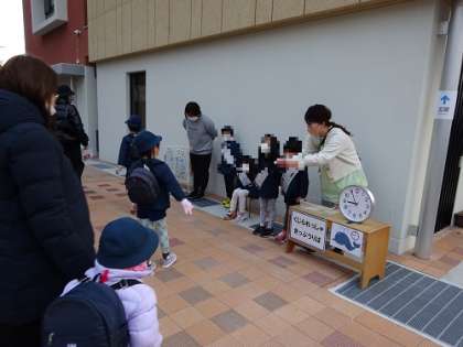 同時に、くじら列車切符ももらい、子どもたちは9時までに登園できるように頑張っています。