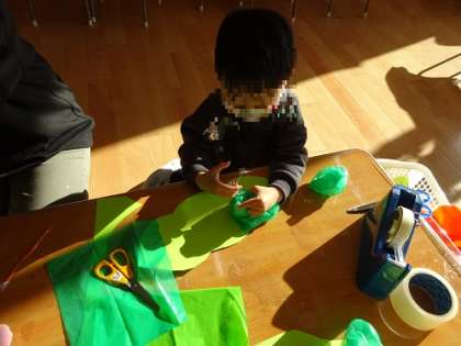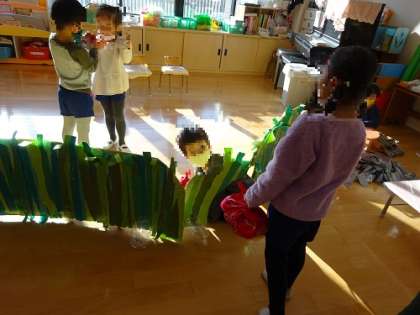 朝から作って遊んだり、劇の表現遊びを楽しんだり様々な姿があります。