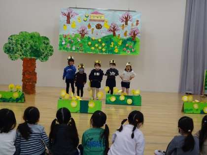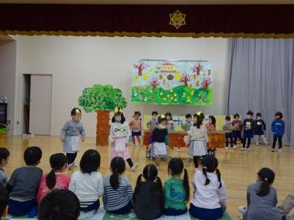 劇遊び(4歳児)ほし組 公開日 2023/02/01 更新日 2023/02/01 お知らせ 「おなべおなべにえたかな」 の劇では、子どもたちと先生が考えた言葉や動きがたくさんあります。 友達と、劇遊びの中で物を分け合うこと(自分ばかり取ってしまうと友達の分がなくなってしまうからどうしたらいいだろうなど)を考えながら創ってきています。 少し恥ずかしそうに言葉を話す姿や友達と自信をもって話す姿など、様々ですがみんな楽しそうに予行をしていました。 当日楽しみです。 いいね(0)