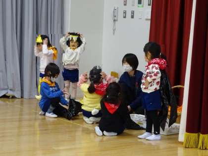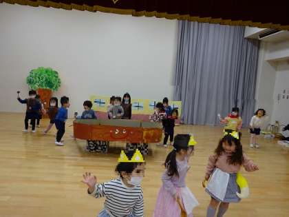 劇遊び(4歳児)ほし組 公開日 2023/02/03 更新日 2023/02/03 お知らせ みんなでダンスをしたり、出番に向けて次の準備をしたりしています。 自分の出番のための着替えも自分で着替え、準備をします。 自分のやることに見通しをもち、次の準備をするということが4歳児のこの時期には、できるようになります。 頼もしくもあり、必死に着替えている様子がかわいくもあり、成長した姿です。 いいね(0)
