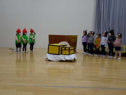 劇遊び(4歳児)ゆき組 公開日 2023/02/03 更新日 2023/02/03 お知らせ 劇遊びでは、役や決まり子どもたちは発表会で見ていただくことを楽しみにしながら、取り組んでいます。 意地悪おじいさんの表情などもとっても豊かに表現しています。 今年度は実際に見ていただけて、とてもうれしいです。 いいね(0)