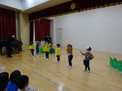 3歳児(いちご組) 公開日 2023/02/07 更新日 2023/02/07 お知らせ 劇も声が出てきて、表現を楽しんでいます。 また、他のクラスの劇を見入っています。 こうして他のクラスの劇をみることで、憧れの気持ちをもち、来年度の自分たちの姿になります。 いいね(0)
