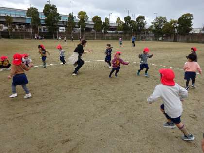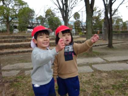 久しぶりのグラウンド(いちご組) 公開日 2023/02/14 更新日 2023/02/14 お知らせ 寒い中ですが、今日はゆき組さんと一緒にグラウンドに行ってきました。 みんなで思いっきり走ると、「先生早いでしょ♪」ととっても嬉しそうな顔をしていました。鬼ごっこをしたり、遊具で遊んだり、落ち葉を友達と一緒に見つけて見合いっこしたり、、、たくさん遊んで楽しみました! いいね(0)