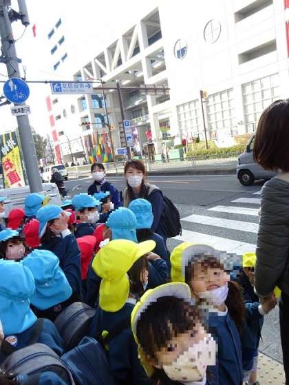こうして公共のルールを守ることも園外保育のねらいの一つです。