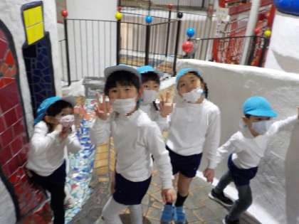 キッズプラザの中では、同じ組の友達と、いろいろなところを回って遊びました!