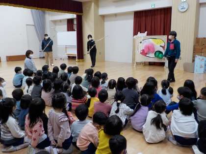 新しい園舎での避難訓練でしたが、2分で避難が完了しました。