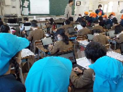 学校見学では、いろいろな学年の教室や音楽室、理科室などに入らせていただき、授業の様子を見せていただきました。