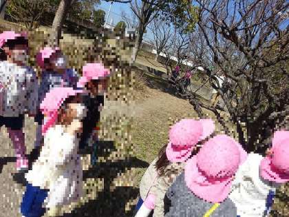 今日も良いお天気で汗ばむくらいの暖かさでした。子どもたちは広いグラウンドで思い切り走ったり、今日は中あてを楽しむ姿もありました。また、白い可愛らしい梅の花を見つけ「可愛いね」「上にいっぱい咲いているよ」と春の訪れを感じる姿もありました。