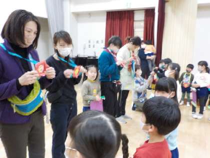 おわかれかい(5歳児) 公開日 2023/03/06 更新日 2023/03/06 お知らせ お別れ会で、修了をお祝いしてもらいました。 これまで楽しんできたダンスを一緒に踊ったり、プレゼント交換をしたりして、みんな笑顔いっぱいでした。 お世話になった先生方にもプレゼントを渡しました。 お部屋に帰ってからも「楽しかったなあ!」と、友達と言い合っていました。 いいね(0)