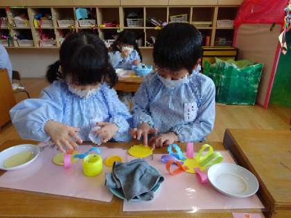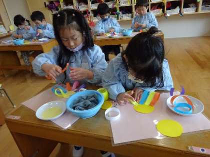 小さいお友達へのプレゼント♪ 公開日 2023/03/06 更新日 2023/03/06 お知らせ 1日入園に遊びに来てくれるお友達にプレゼントをつくりました。 最近過ごしずつ暖かい陽ざしが差し、春を感じられるようになってきました。 今回はそんな春を感じながらお花をつくりましたよ。「花びらがたくさんあって可愛いね」と嬉しそうに話しながらつくっていましたよ♪ いいね(0)