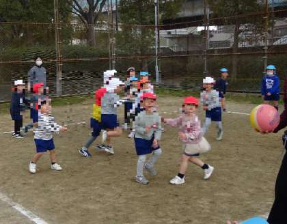 年長さんの逃げる姿に憧れて、ボールを見てよけたり、一緒に喜んだりしていましたよ♪