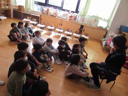 絵本を読んだあと、命の始まりの大きさや、赤ちゃんが生まれた時の大きさを知らせました。
