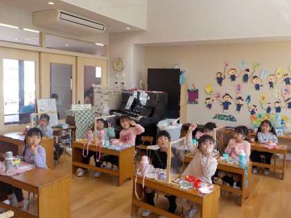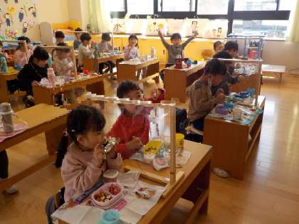4月からは給食ですね。伝法小学校で見せていただきましたね!楽しみですね。ドキドキしますね。少しだけ心配なお友達もいるかな?でもきっとお友達も一緒に食べるから大丈夫ですよ!