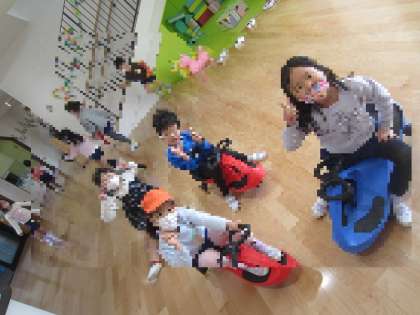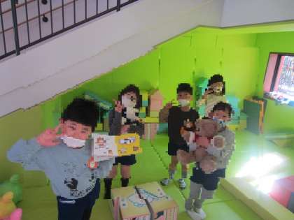 遊戯室でそら、つき組で一緒に朝のご挨拶をし、明日の修了式に期待を膨らませていました。(写真3枚目)