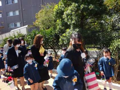 修了式後、3歳児、4歳児さんが、花道をつくって見送ってくれました。