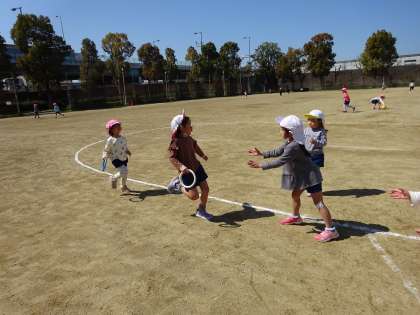 今日も良いお天気でグラウンド日和でした。リレーや中あてを汗をかきながら存分に楽しみました。広いグラウンドでたくさん遊べて楽しかったですね!