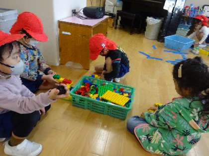 「一緒に遊ぼう」と誘いかけたり、「どうぞ」とおもちゃを貸したりして、優しく関わりながら遊んでいましたよ!