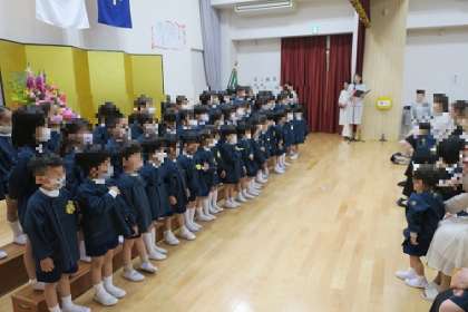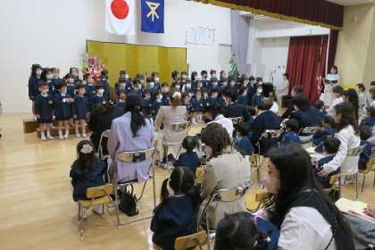 入園式では在園児がお祝いの言葉と歌を披露しました。