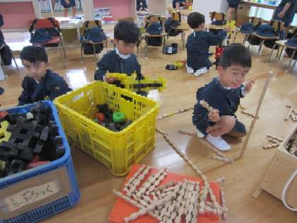 進級児は、新しいクラスになり、ドキドキしながらも、いろいろな遊びを試して楽しみ始めています。