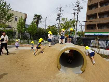 危ないように見えて子どもたちのバランス感覚で楽しんでいます。