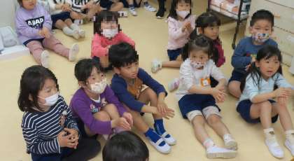 石鹸で丁寧に洗う大切さを知ったつき組の子どもたちは、お弁当を食べる前にさっそく歌いながら洗っていましたよ。