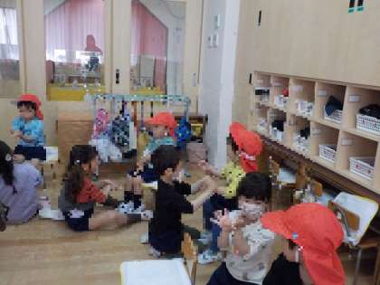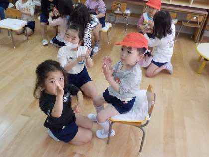お手伝いのあとは、「あわあわてあらいのうた」を教えてあげたり、ダンスや体操を教えてあげたりしました。