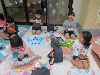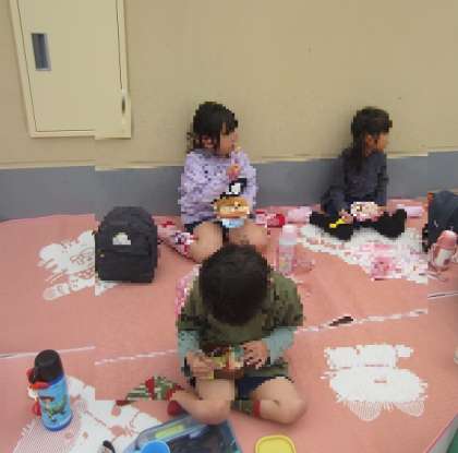 ウッドデッキから、こいのぼりが泳いでるのが見えて喜んでいました。