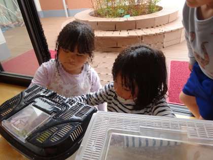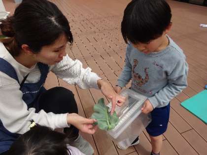なんの幼虫かな? 公開日 2023/04/18 更新日 2023/04/18 お知らせ ブロッコリーの葉の裏に小さな幼虫を見つけて 「ほら!みて!幼虫いてるよ!] と年長児にみせてみると 「なんのようちゅうかな?」 「モンシロチョウかな?」 「なんだろう?」 と興味津々。 何に変身するか楽しみですね! いいね(0)