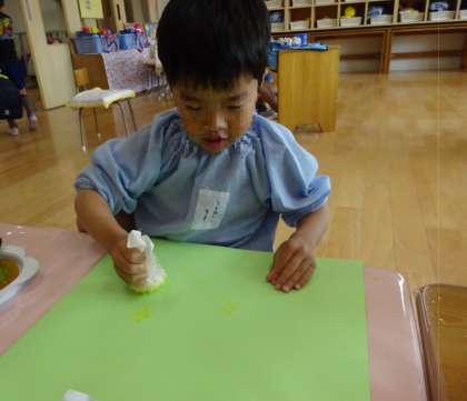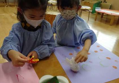 絵具を使って、スタンプ遊びをしました!