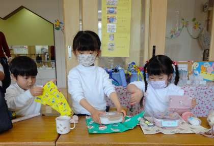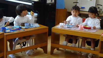 朝、登園すると、「お弁当持ってきたよ!」と嬉しそうなほし組さん。
