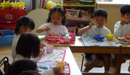 「おいしいね♪」とお家の人につくってもらったお弁当をおいしそうに食べました♪